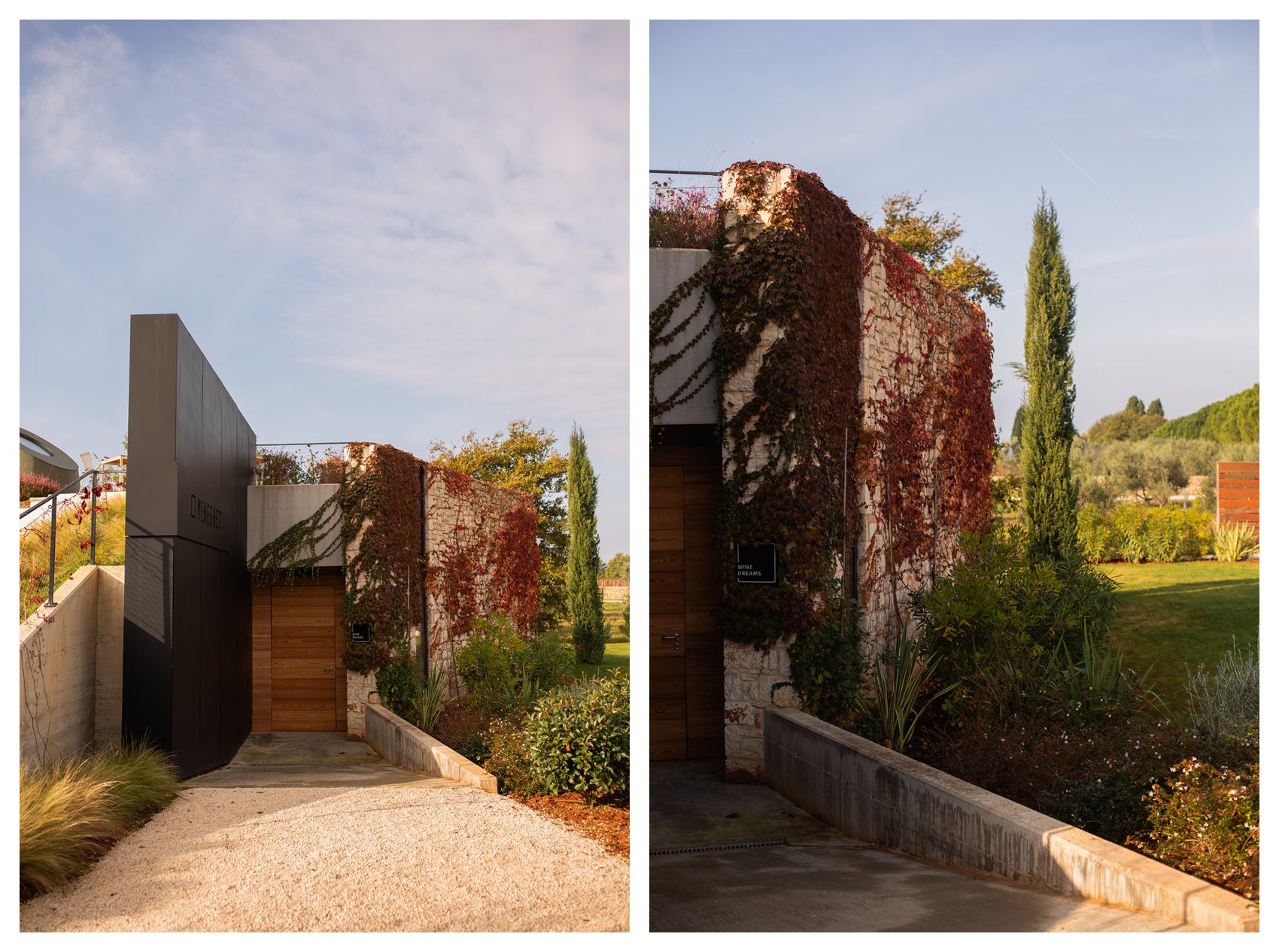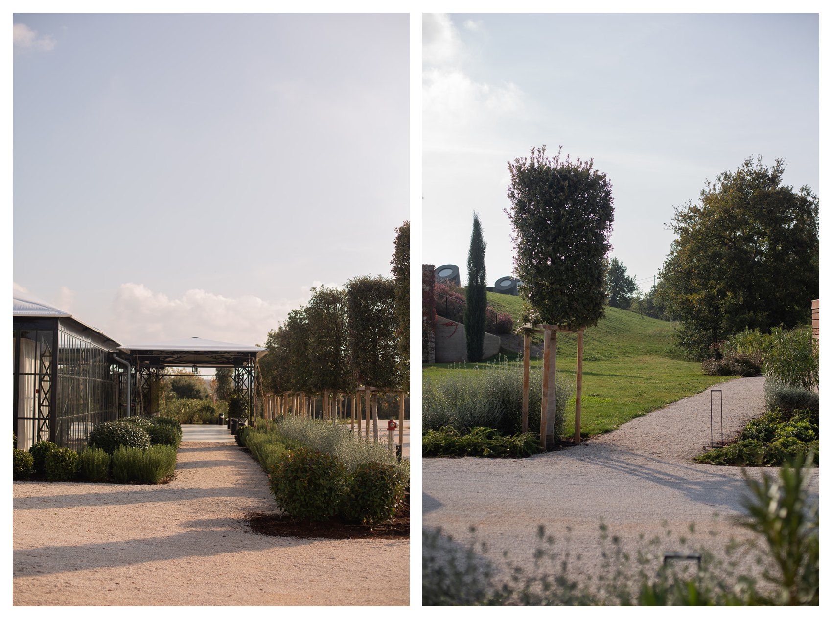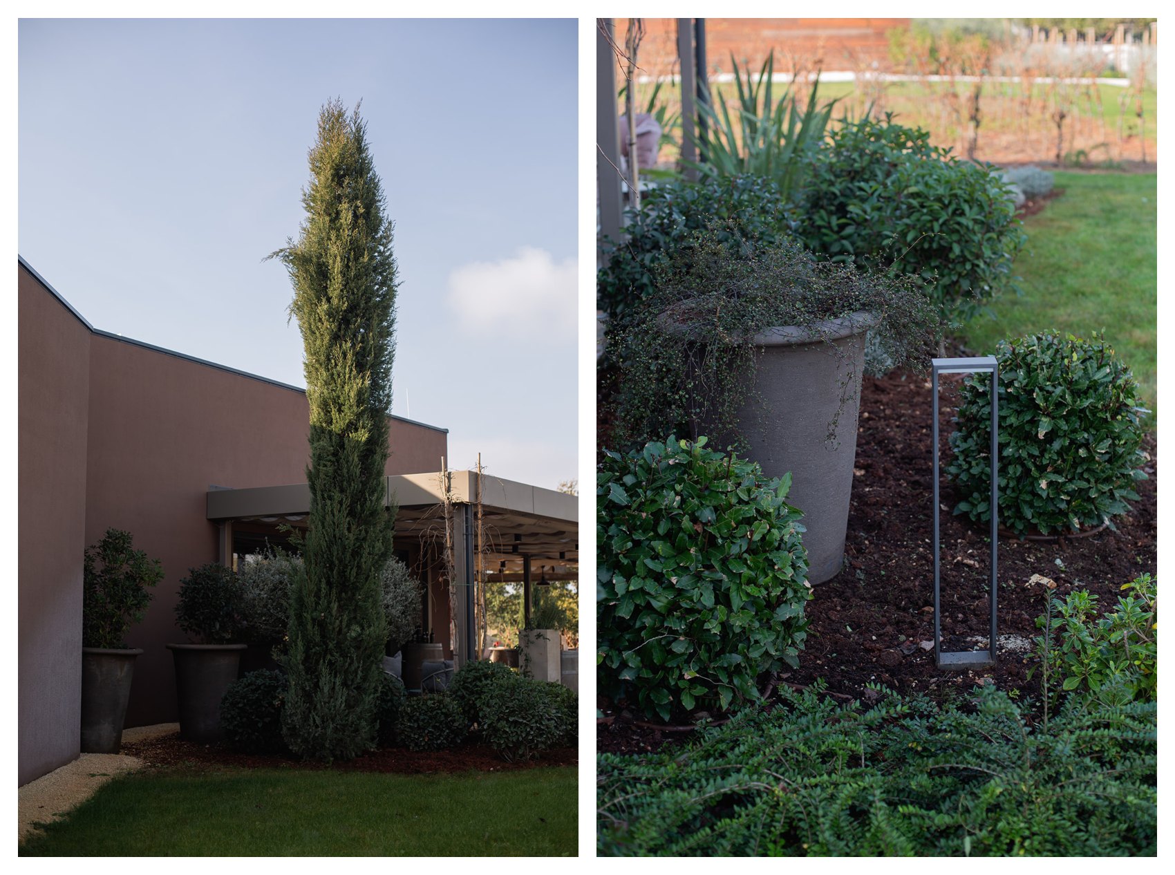 Prostor Vinarije oblikovno je spojen kroz istu formu – stvaranje aleje, ali s drvoredom stabla tipičnog za podneblje – hrasta crnike (Quercus ilex), malog stabla tamne i gotovo čipkaste teksture krošnje.