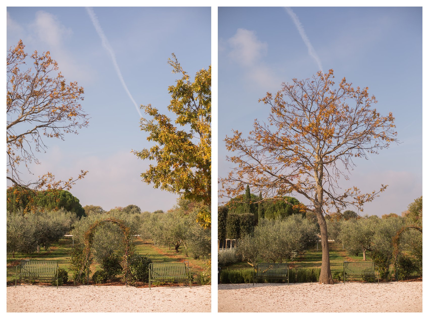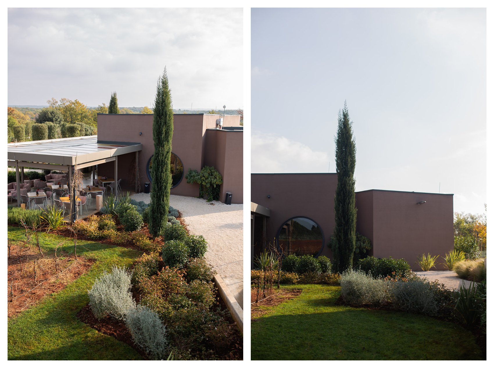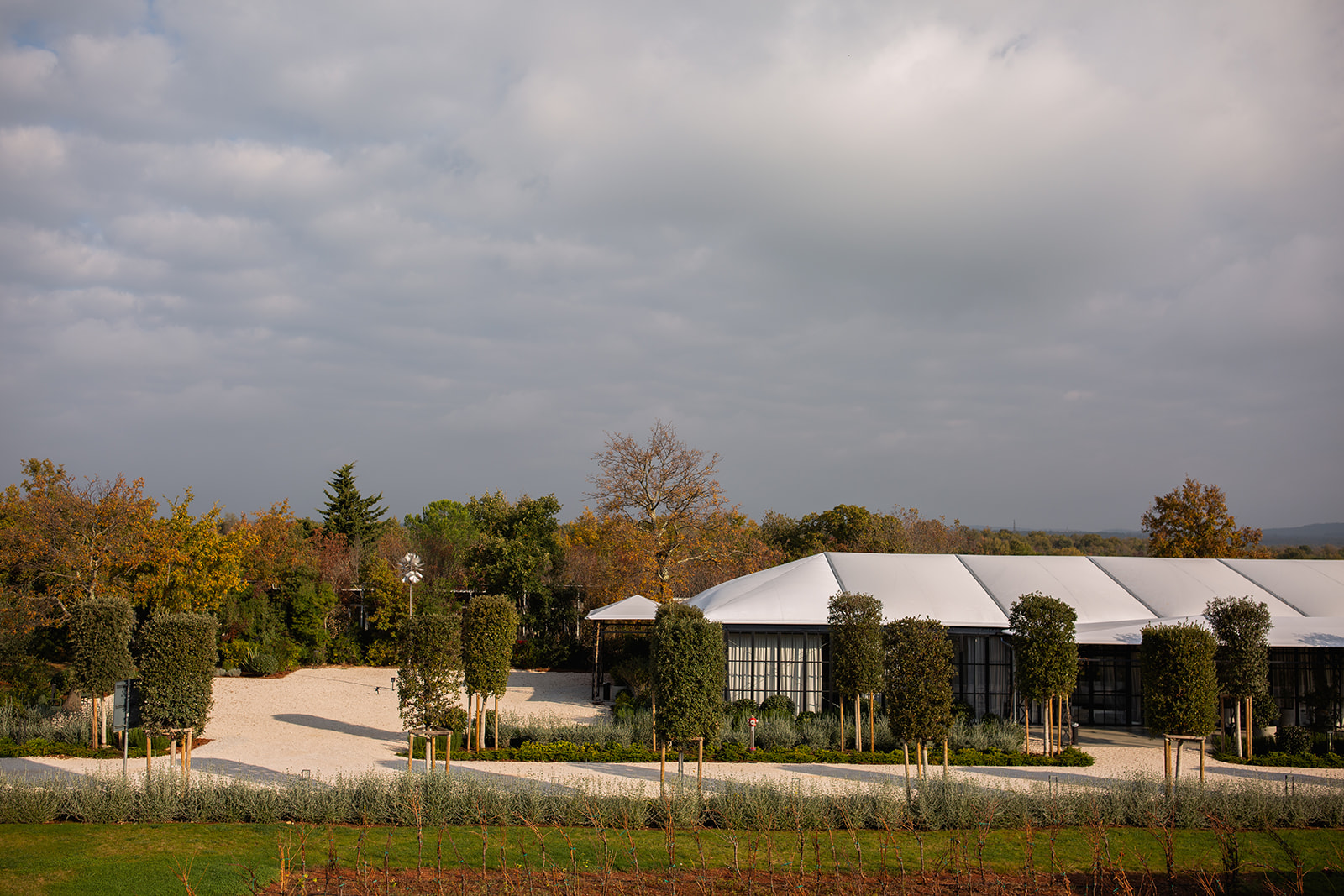 Prostor Vinarije oblikovno je spojen kroz istu formu – stvaranje aleje, ali s drvoredom stabla tipičnog za podneblje – hrasta crnike (Quercus ilex), malog stabla tamne i gotovo čipkaste teksture krošnje.