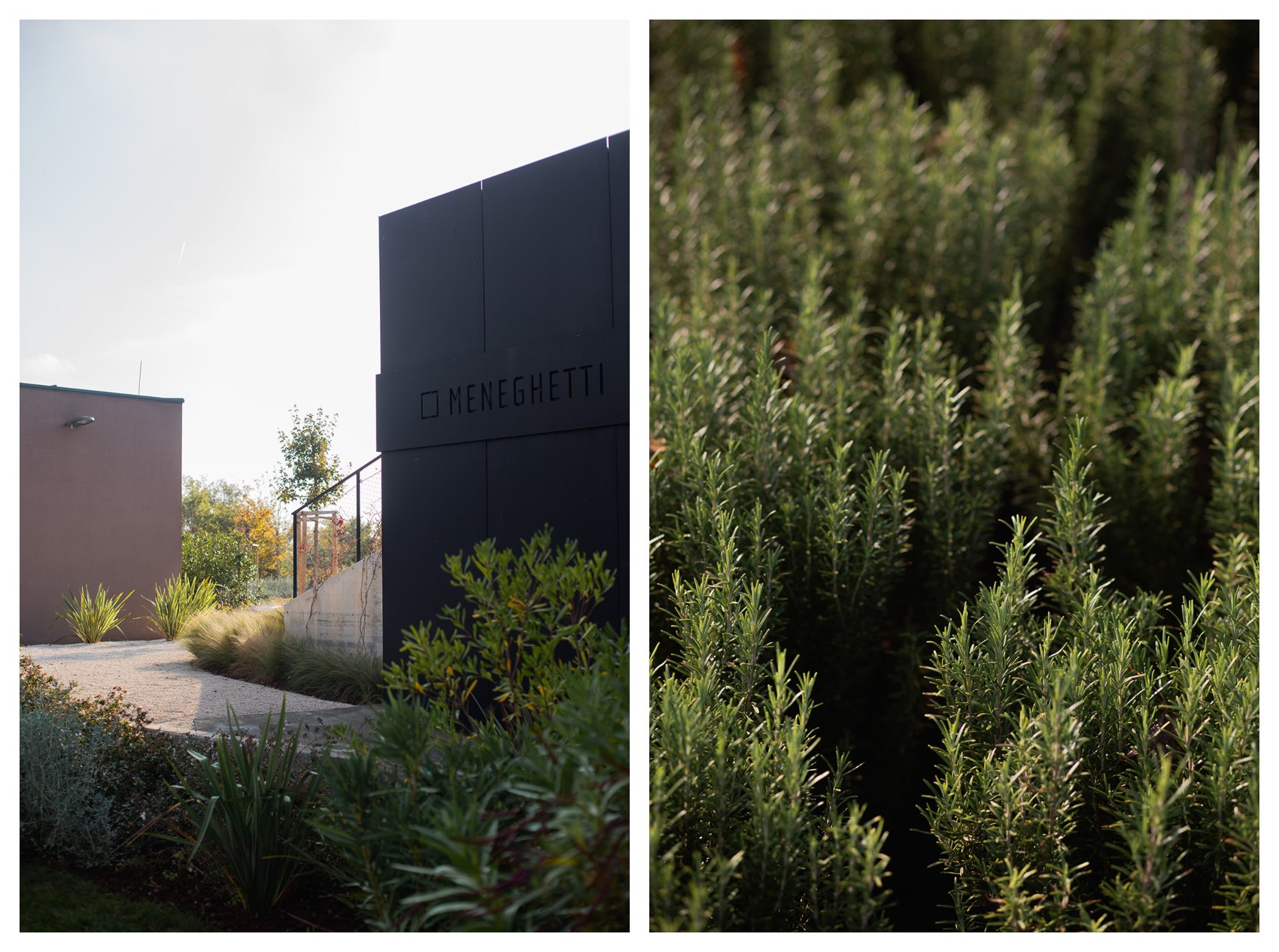 Stancija Meneghetti mrežasto je utkana u okoliš suhog mediteranskog travnjaka, šume hrasta i primorske makije nedaleko od morske obale. Svoje postojanje u prirodnom okolišu otkriva tek u rasteru vinograda i maslinika te pokojeg prašnog makadamskog puta.